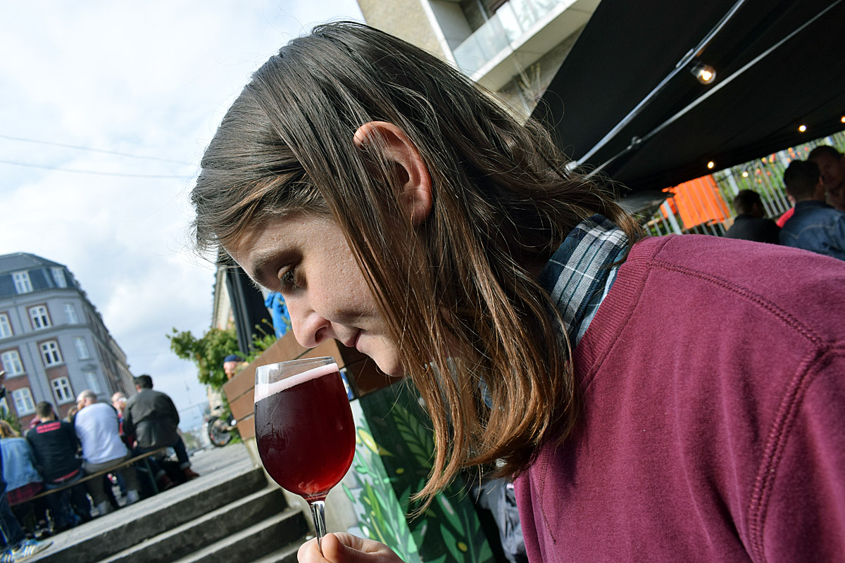 Bryggaren Sean Spiller fick prova öl från det egna bryggeriet på Fermentoren i Köpenhamn.