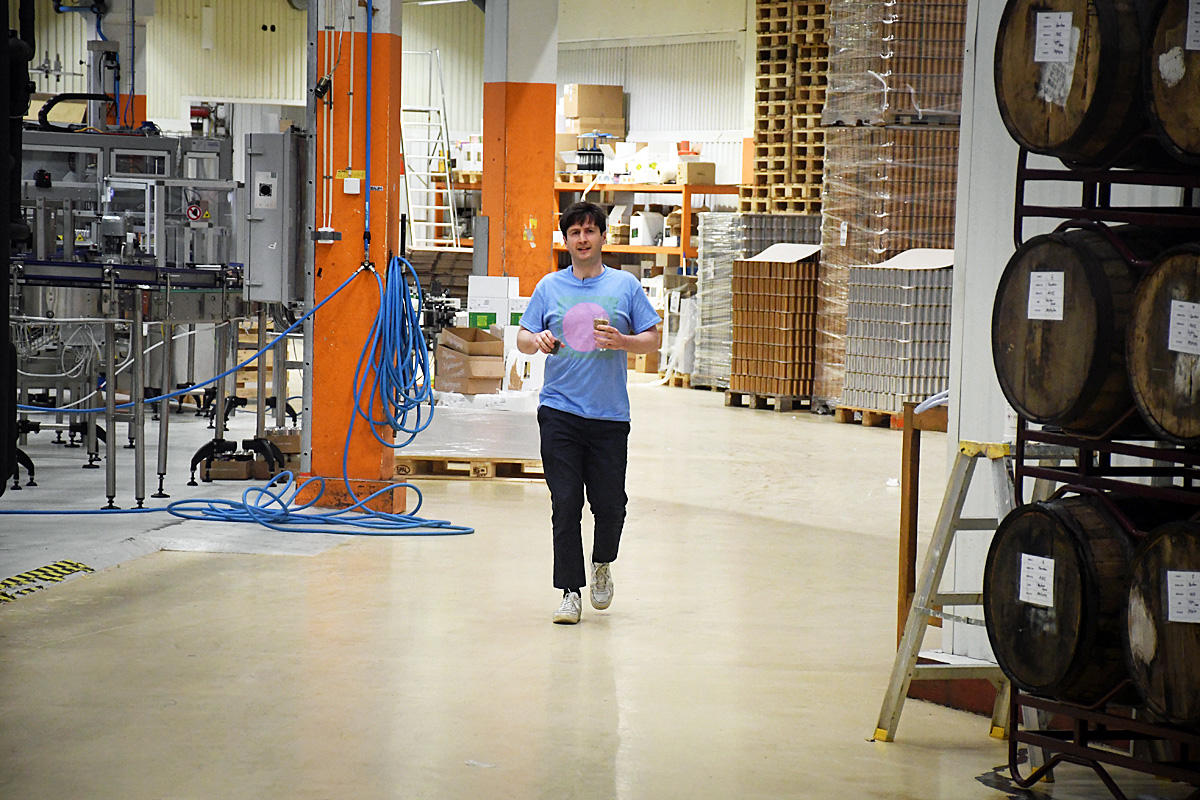 Kameran på en dator och en mikrofon räckte långt och den lilla studion var placerad så att tittarna kunde se en del av de stora jästankar som finns i bryggeriet.