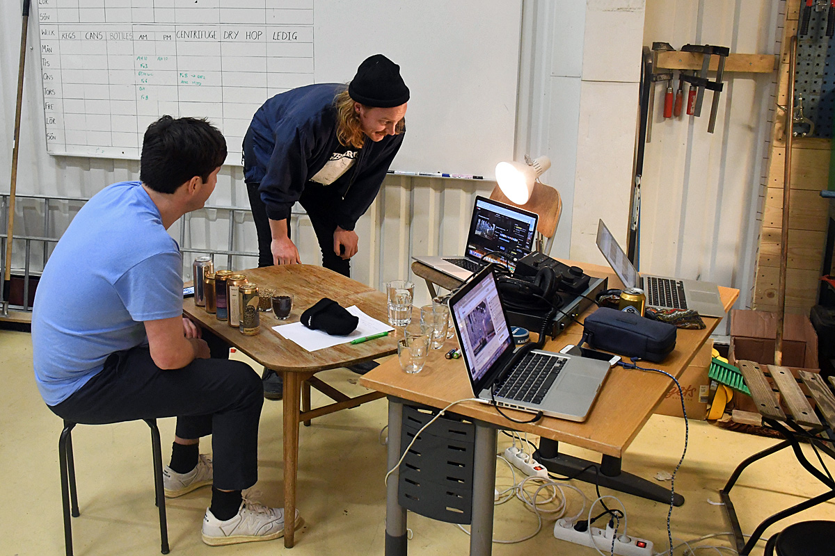 Kameran på en dator och en mikrofon räckte långt och den lilla studion var placerad så att tittarna kunde se en del av de stora jästankar som finns i bryggeriet.
