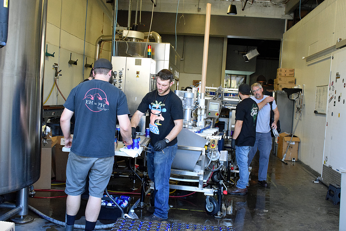 När Beernews hälsar på är det också första dagen som bryggeriet använder sig av en burklina. Burkar blir allt mer populärt även i Kalifornien.