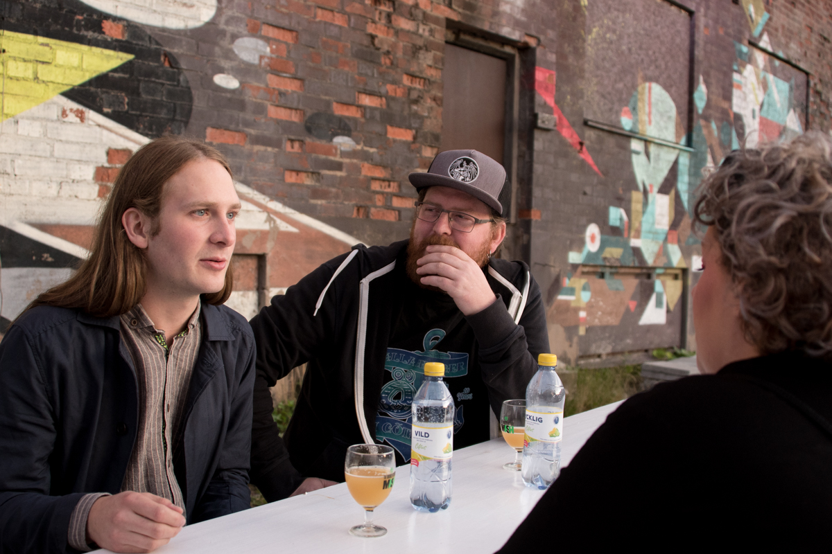Beerblioteks Axel Hagman i mitten, här tillsammans med Stigbergets Simon Karlsson och Jenny Lundgren, uppskattar Brooklyn Beer Mansion för att den bryter mot de vanliga ölmässorna likriktning.