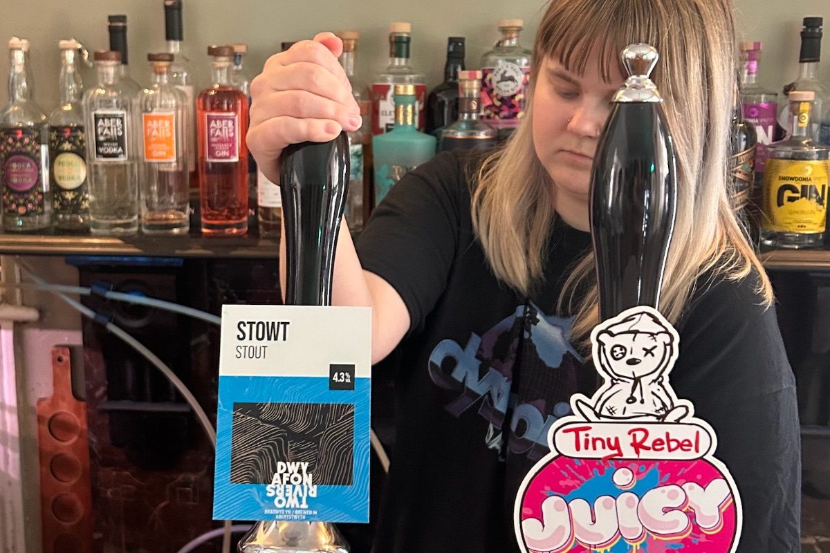 Vad som bjuds på fat är förstås minst lika intressant som burkarna och flaskorna. 17 öl, de allra flesta walesiska finns, tre av dem på cask. De vanliga kranarna domineras av modernt humligt och olika sorters lager. Naturligtvis finns även ett par lokala cider.