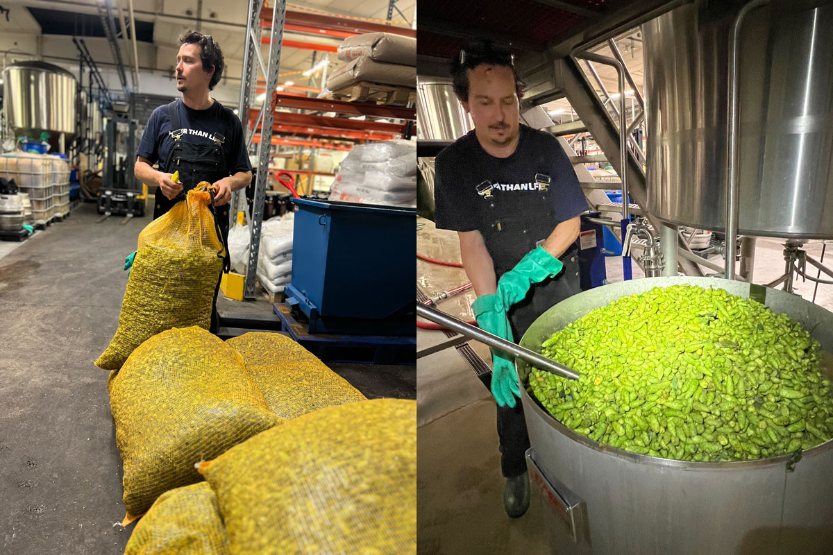 Olle Andersson på O/O Brewing genomförde en kvällsbryggning på fredagen och lät den färska humlen jobba ensamt och stå för både bitterhet och arom i ölet Fresh Hop Ale Tango.