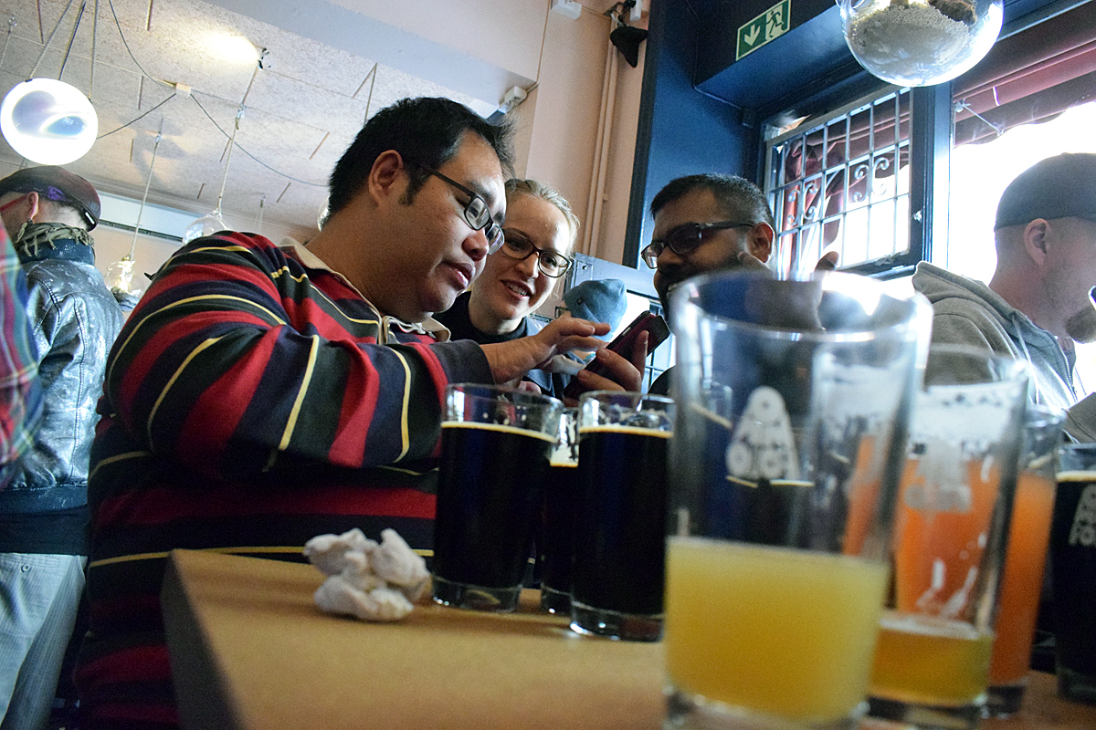 Det var hög stämning när Omnipollos födelsedagsfest inleddes under fredagen. Det serverades öl från många av världens mest hyllade bryggerier och barpersonalen hade en hektisk dag.
