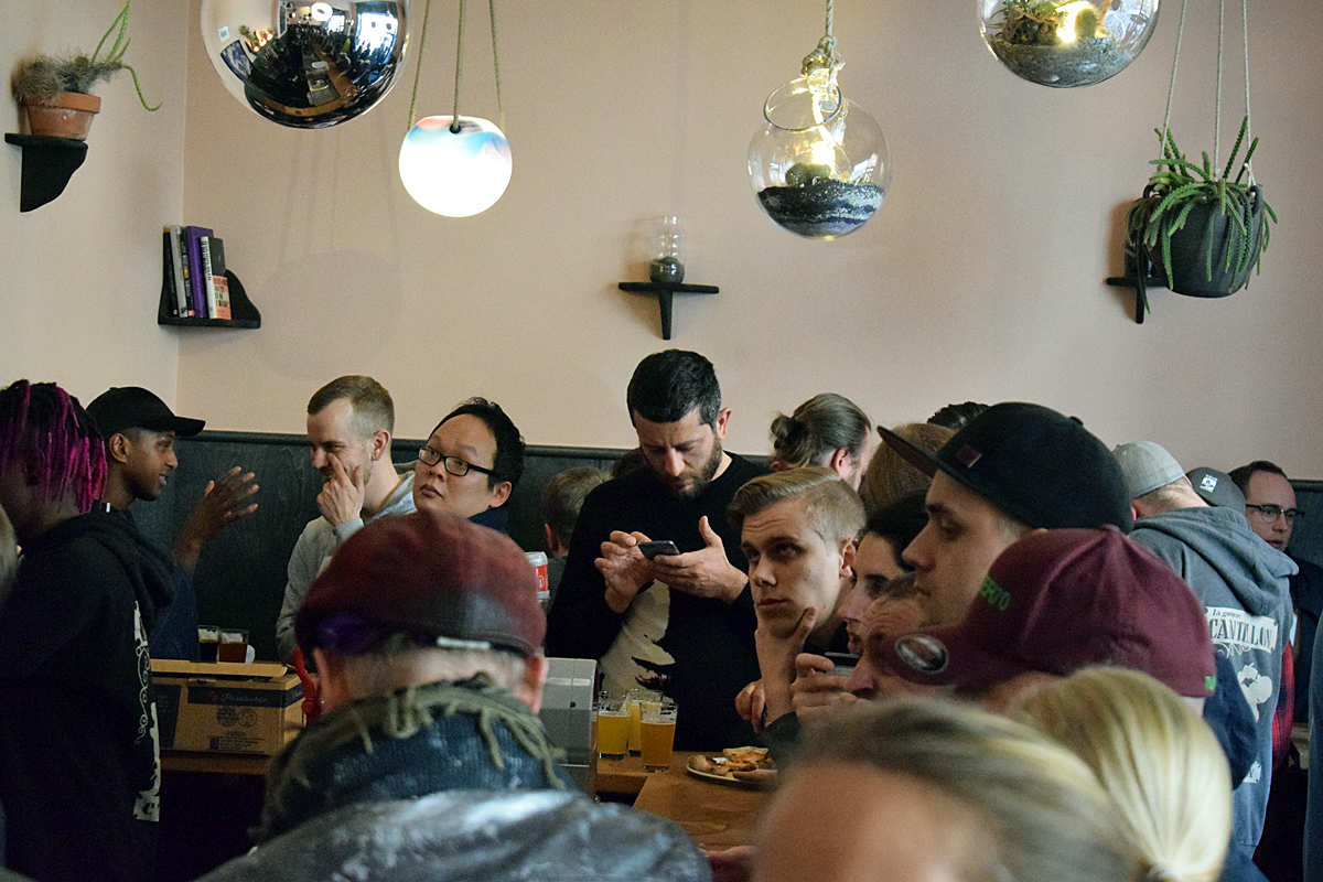 Det var hög stämning när Omnipollos födelsedagsfest inleddes under fredagen. Det serverades öl från många av världens mest hyllade bryggerier och barpersonalen hade en hektisk dag.