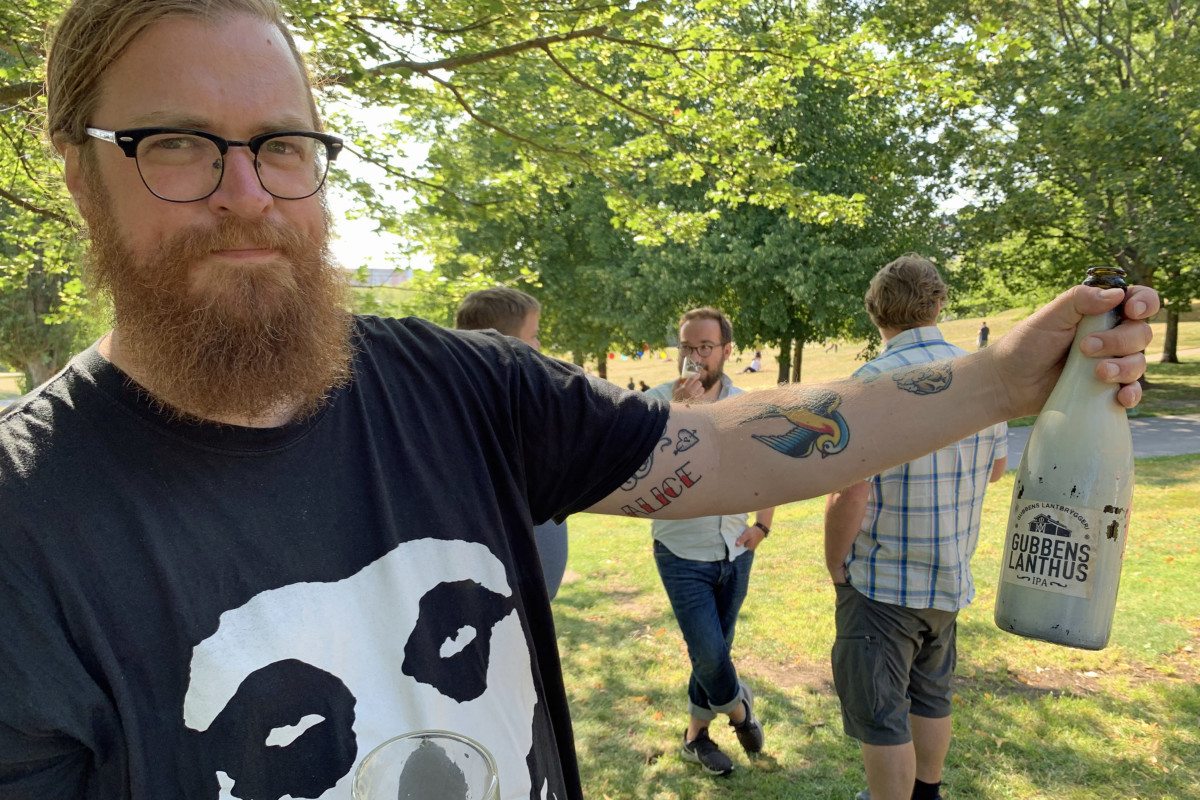 Claes Eliasson visar upp sin Lanthus IPA med brett.