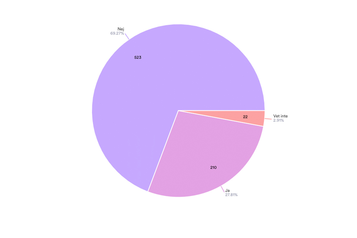 I graferna och texten nedan återfinns alla resultat från enkäten. Totalt var det 769 personer som svarade.