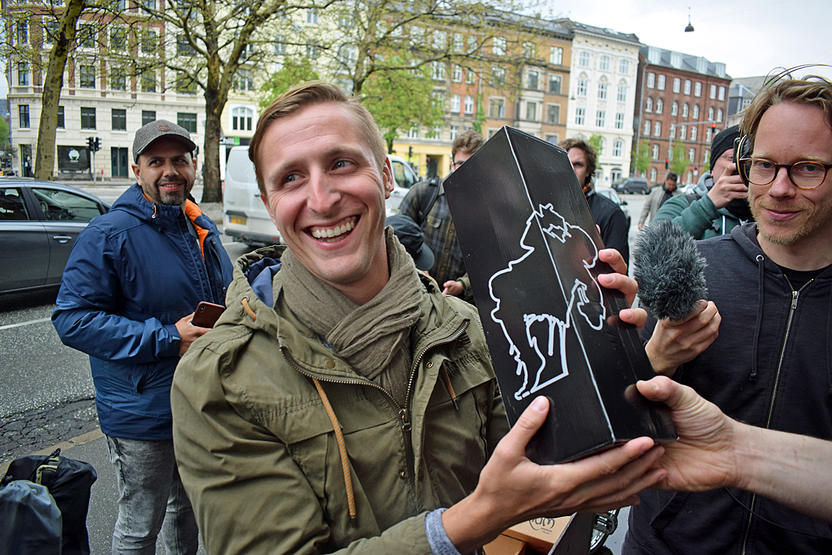 Amerikanen Luke Highwater vann lottdragningen och fick med sig en magnum-flaska av det eftertraktade ölet.