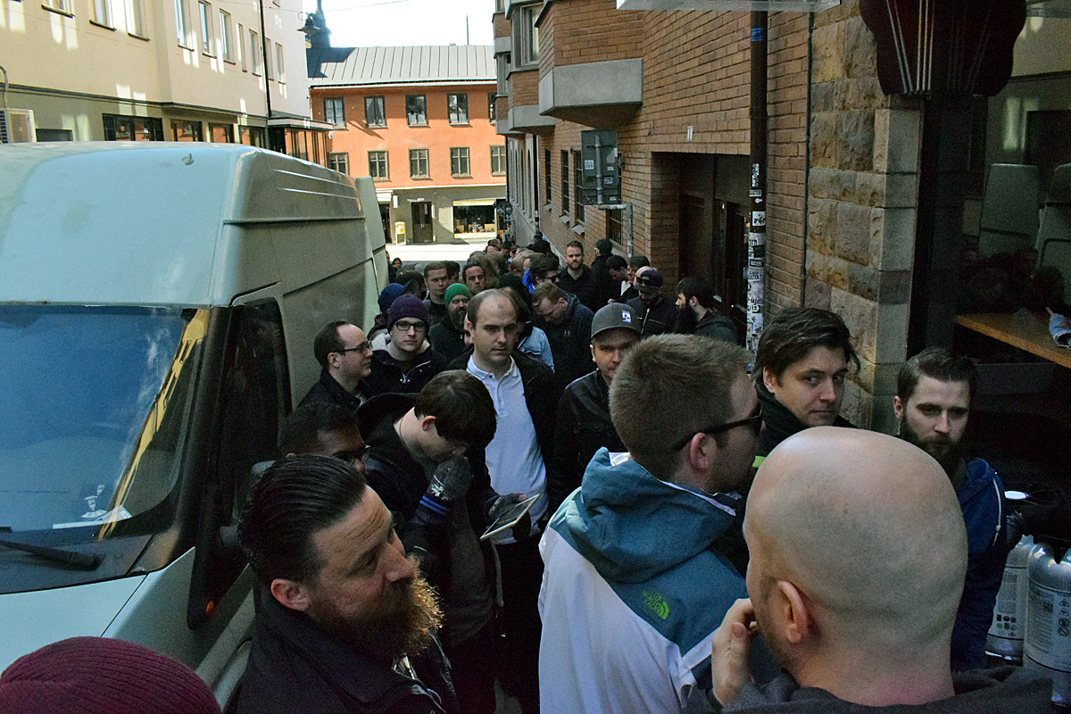 Det blev långa köer när Omnipollo inledde sitt firande på Söder i Stockholm. Allra först i kön var Robert Brodén.