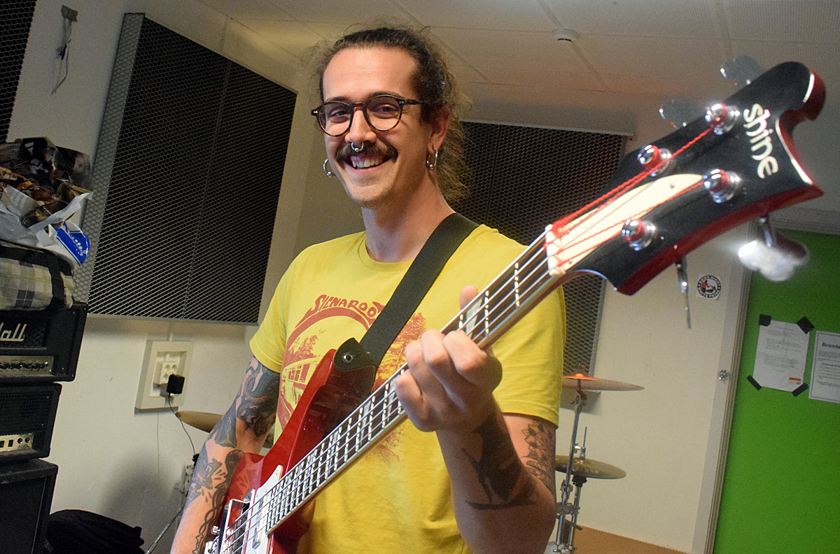 – Jag spelade gitarr då, men började att spela bas efter ett tag, säger han.