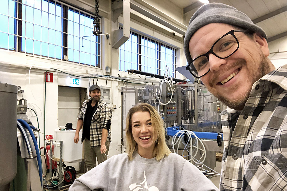 Ida Ivarsson hälsade på hos Erik Frithiof för att brygga ett specialöl. I bakgrunden Michael Nathhorst.