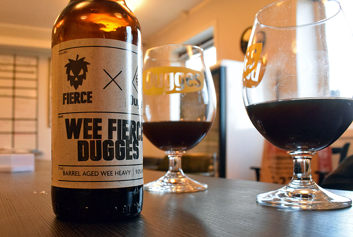 Under året har det blivit en hel del samarbetsöl. Fierce har bryggt tillsammans med Brewdog, Buxton, Cycle Brewing, Tiny Rebel och Weird Beard. Och faktiskt en gång tidigare med Dugges. Då träffades man i Aberdeen och bryggde en scottish ale som lagrats på whiskyfat. Vid besöket i Landvetter blev det en trippel-ipa på tio procent.