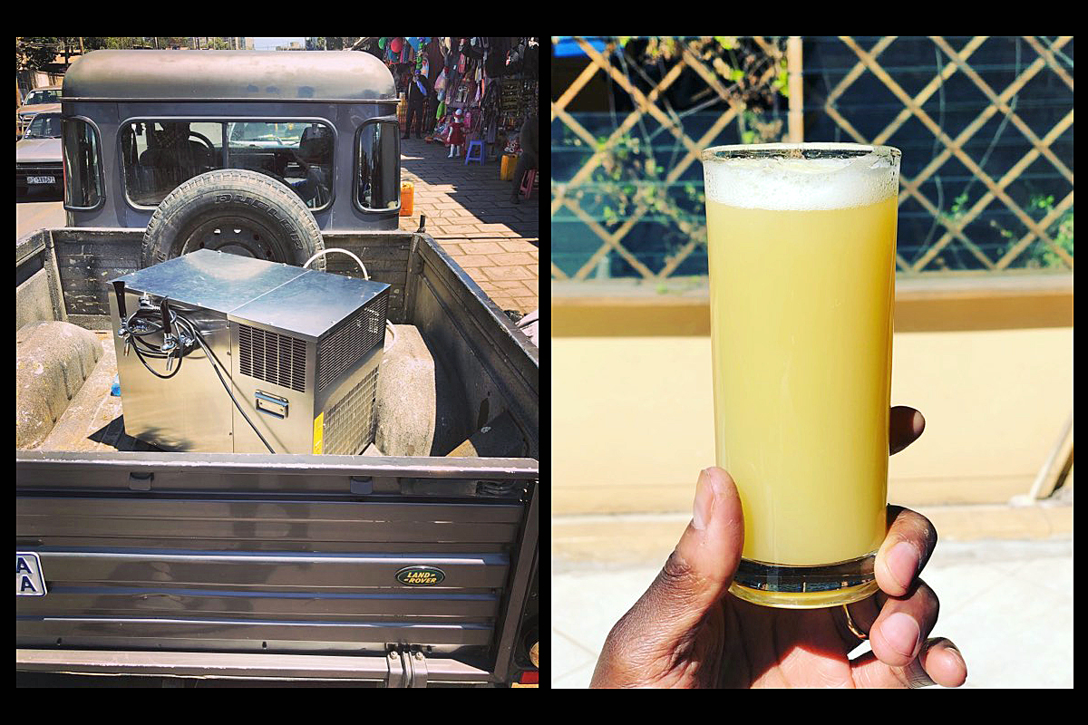 Med hjälp av en Land Rover kunde ölkranarna hamna på rätt plats. Här ser du också den första IPA:n i Addis Abeba.