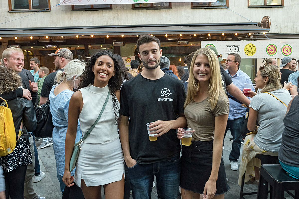 Maria de la Huerga, Nestor Sampodro från Spanien hälsade på vännen Hanna Lind och passade på att prova lite öl. Favoriter var Spaten och Stockholms Lager.