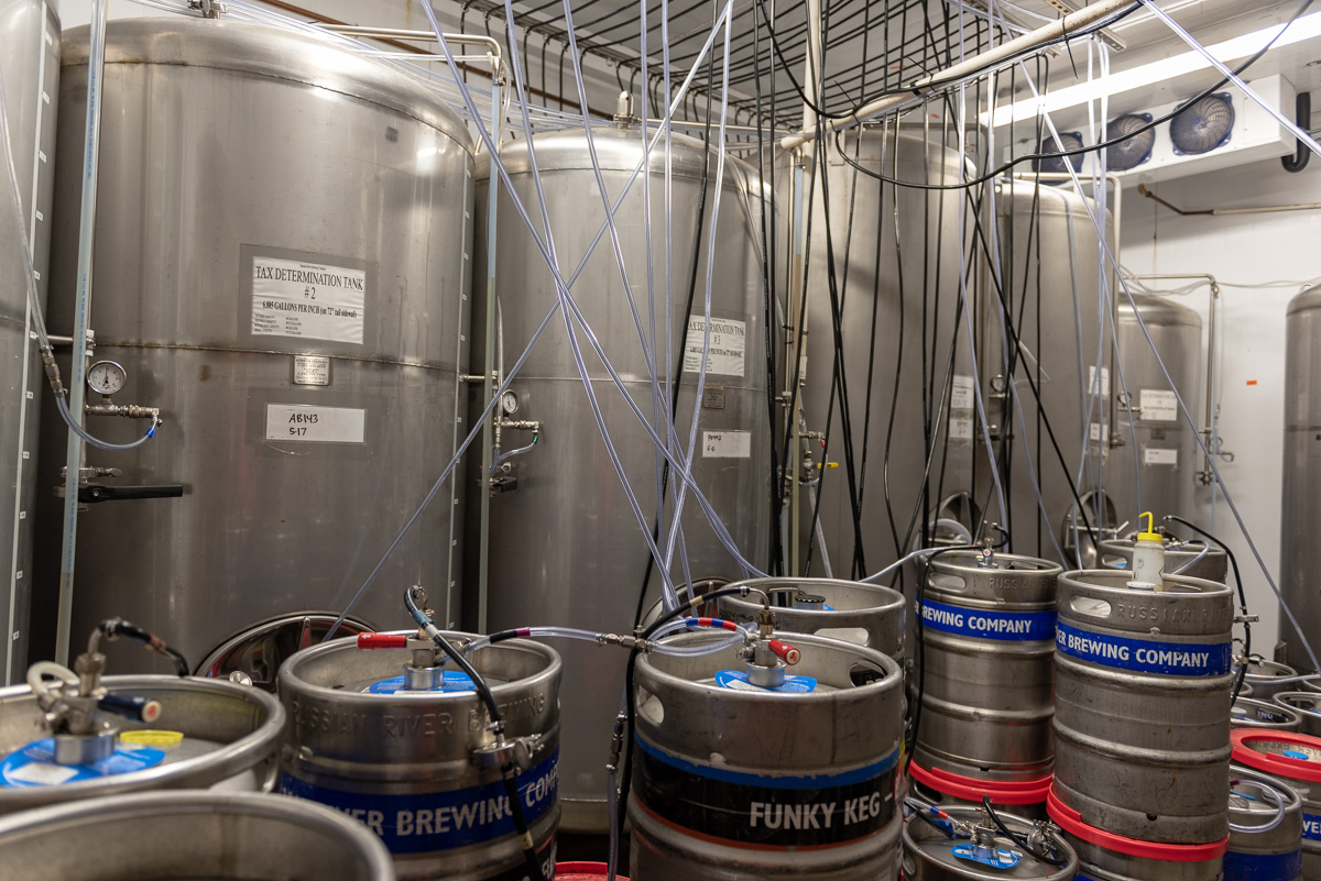 En vän till en vän sammanförde oss med Taylor Lane, som arbetar med kvalitet på Russian River Brewing Co. Hon tog emot oss i bryggpubens bar och visade direkt in oss till bryggeriet. Russian River har två bryggerianläggningar i Santa Rosa och bygger just nu ett komplex strax utanför stan för att samla allt bryggande och restaurangen. Fram tills den nya byggnaden är klar fortsätter man brygga i det gamla bryggverket mitt i Santa Rosa.