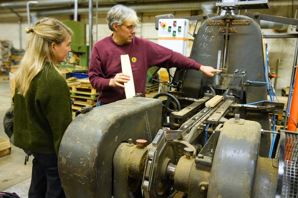 – Hantverket är detsamma nu som då, en del av utrustningen vi använder oss av är över hundra år gammal, berättar han samtidigt som han med händerna känner på en halvfärdig tunna som står över öppen eld – där stavarna, som ekämnena kallas, mjuknar – för att slutligen kunna bindas samman till en tunna.