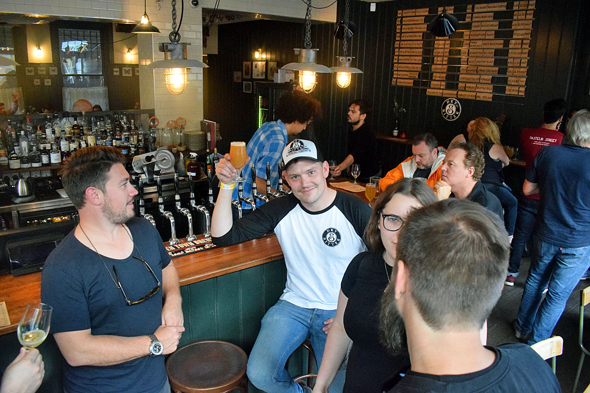 Han cirkulerade runt i baren och fick prata öl både här och där. Inte minst med en hel del branschkollegor som sökt sig till stadsdelen Bethnal Green och puben Kings Arms. Representanter från bland annat Buxton, Kernel och amerikanska Other Half fanns på plats.