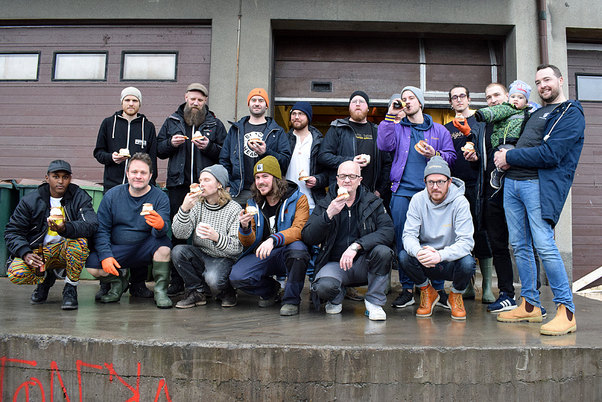 På plats för att brygga fanns representanter för Omnipollo, Dugges, Beerbliotek, All In Brewing, Sahtipaja, Poppels och Stigbergets. Ölet ska bli en New England-IPA men med smak av semla.