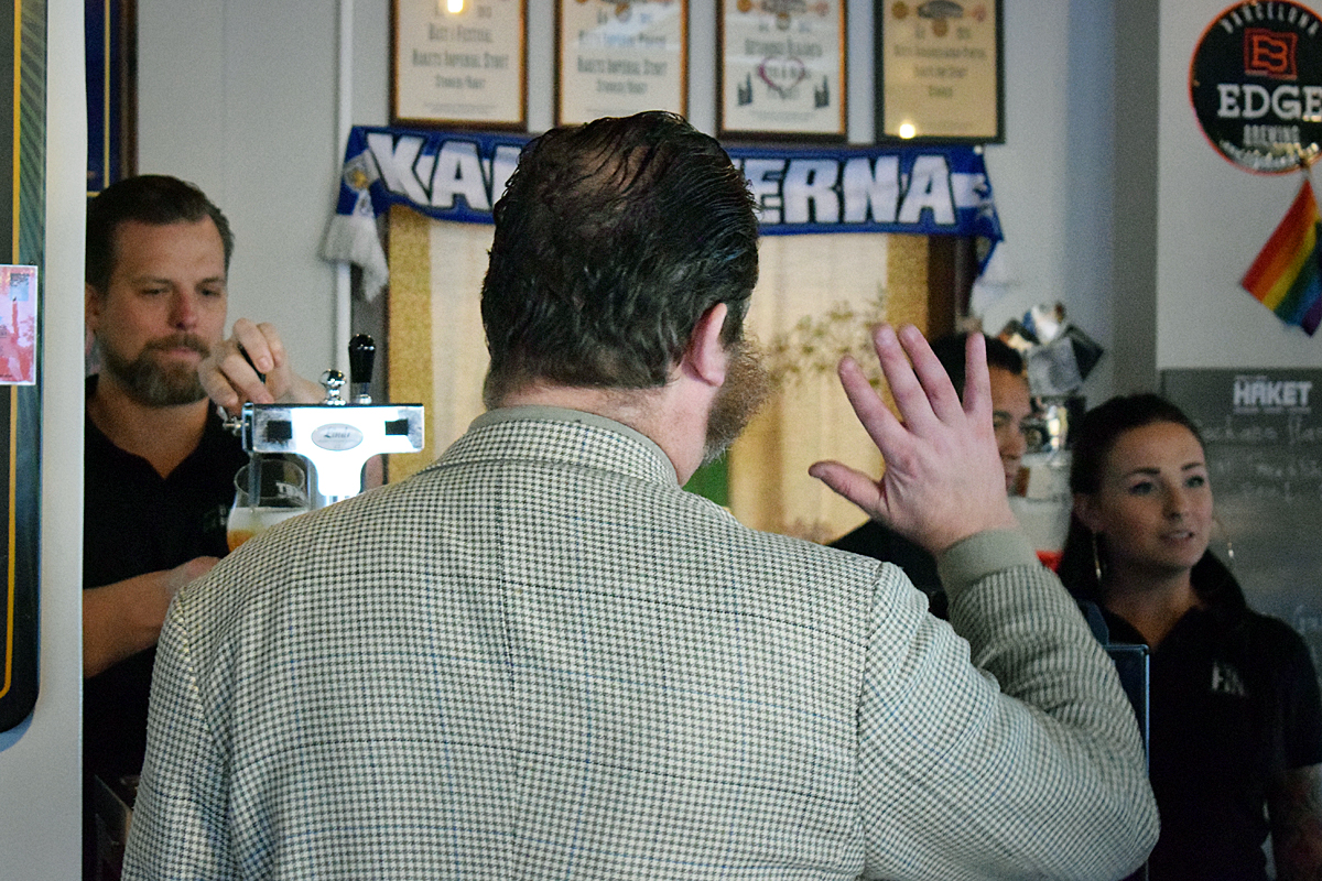 GÖTEBORG. Precis, fem öl var det som fanns på fat. Jonas Ahnfelt beställer av Michael Nathhorst från Hyllie och Emily Olofsson från Brygghuset Finn.