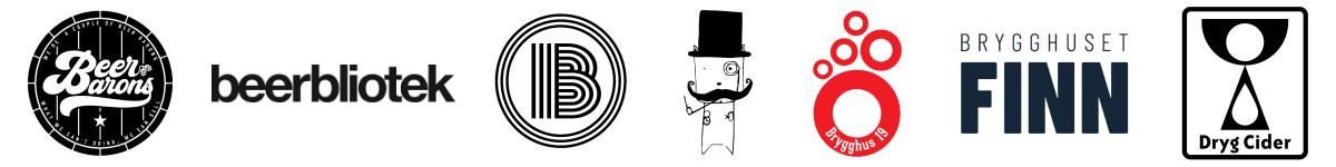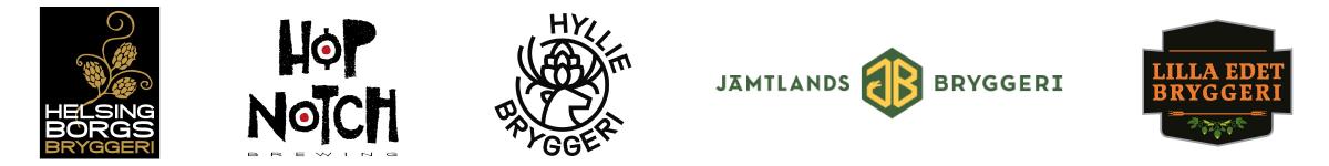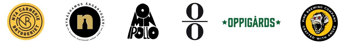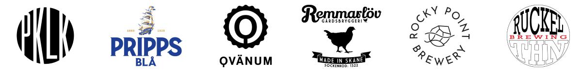 • Beer Barons • Beerbliotek • Beerium • Brewski • Brygghus 19 • Brygghuset Finn • Dryg Cider • Dugges • Falcon • Fjäderholmarnas Bryggeri • Fruktstereo • Guinness • Helsingborgs Bryggeri • Hop Notch Brewing • Hyllie Bryggeri • Jämtlands Bryggeri • Lilla Edet Bryggeri • Nya Carnegiebryggeriet • Nynäshamns Ångbryggeri • Omnipollo • O/O Brewing • Oppigårds Bryggeri • Pine Brewing Company • PKLK • Pripps Blå • Qvänum • Remmarlöv Gårdsbryggeri • Rocky Point Brewery • Ruckel Brewing • Smedsbo Slott • Stigbergets Bryggeri • Stockholm Brewing Co • Stockholms Bränneri • Sälens Fjällbryggeri • This Is How • Ängöl